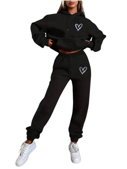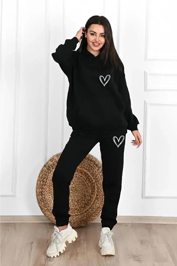 Generic - بيجامه حريمى شتوى بتصميم قلب، ، لون أسود - مقاس فرى سايز حتى 80 كيلو - خامه ملتون بلوش بوبرة داخليه - موديل رقم#: 584B