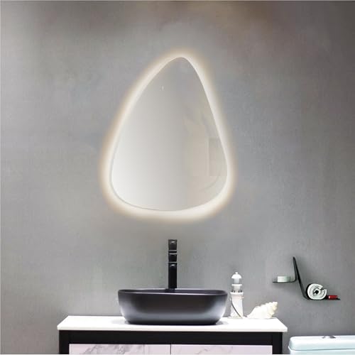 Generic - مراة اضاءة دافئة 80×60 سم - مراة فانيتي مثلثة مضيئة باضاءة LED مع توهج ناعم قابل للتعتيم، مراة عصرية للحمام وغرفة النوم، مضادة للضباب، اضاءة موفرة للطاقة، مثالية للمكياج والعناية الشخصية
