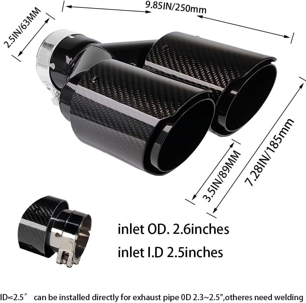 Generic - كاتم صوت مزدوج باللون الأسود *الكربوني طراز 8002-BK بمدخل 2.5 بوصة