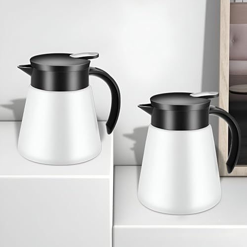 Generic - وعاء قهوة معزول بالفراغ مزدوج الجدار بسعة 800 مل مصنوع من الفولاذ المقاوم للصدأ - إبريق حراري مقاوم للتسرب مصمم للاحتفاظ بالحرارة والبرودة بشكل فائق لمشروباتك المفضلة (ابيض, 2 ترمس)