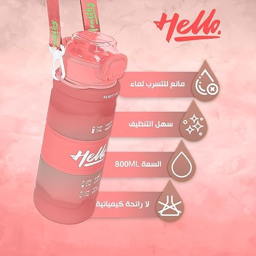 - تصميم مانع للتسرب: استمتع بترطيب خالٍ من القلق مع زجاجة المياه الرياضية الخاصة بنا، والتي تتميز بغطاء موثوق مانع للتسرب لمنع الانسكابات أثناء التمارين أو الأنشطة الخارجية أو السفر.
