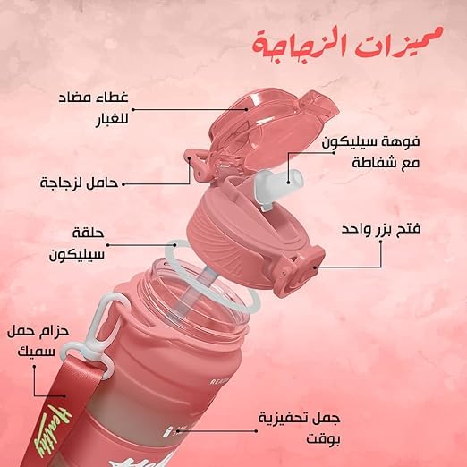 - ماصة مريحة لسهولة الشرب: تسمح الماصة المدمجة بالشرب بدون مجهود، مما يجعلها مثالية للترطيب أثناء التنقل دون الحاجة إلى فك الغطاء.