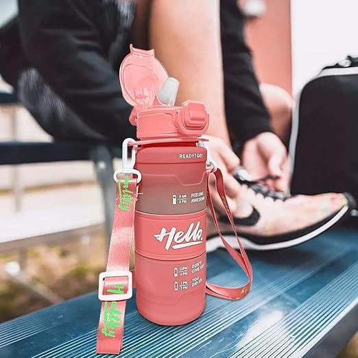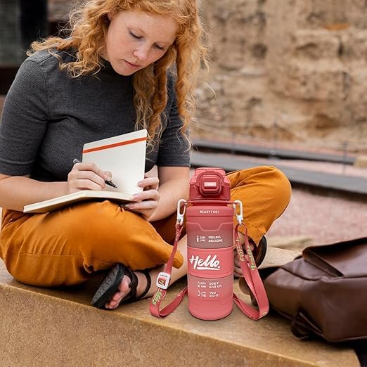 - محمولة ومناسبة للسفر: مزودة بحزام مريح، هذه الزجاجة سهلة الحمل أينما ذهبت - سواء كنت في صالة الألعاب الرياضية أو المشي لمسافات طويلة أو أثناء التنقل.