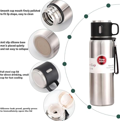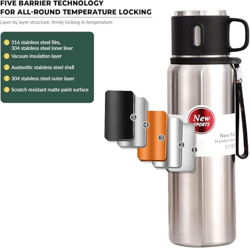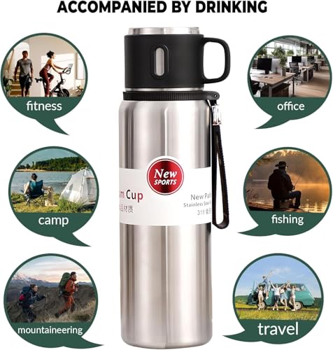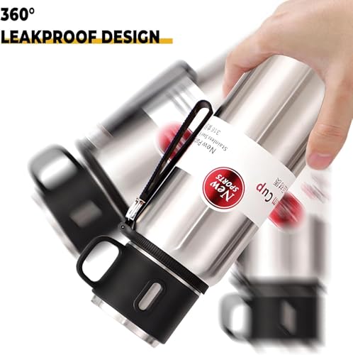 Happy Home - زجاجة مياه معزولة من الفولاذ المقاوم للصدأ سعة 1.5 ل مع كوب، زجاجة مياه معزولة بتفريغ الهواء، للمشروبات الباردة، 24 ساعة للتنقل والسفر (رمادي)