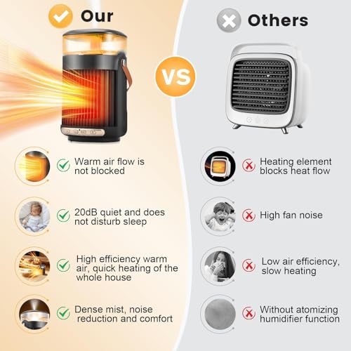 - 【تسخين سريع 3S 3S، وظيفة المزامنة】 يستخدم هذا السخان المدمج تقنية التسخين السيراميك بي تي سي كعنصر طاقة لتسخين بسرعة حتى 100 قدم. هذا سخان مساحة داخلي مع وظيفة التوقيت، وهو مناسب لتوفير الطاقة