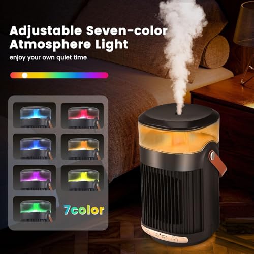 Aofesel - دفاية مساحات 800 وات مع مرطب هواء، منفاخ هواء 3 في 1 للحمام مع 7 أضواء ملونة، بتصميم متأرجح 90 درجة، سخان كهربائي بعنصر تسخين من السيراميك