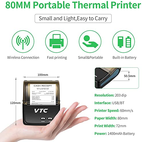 Generic - طابعات إيصالات حرارية بلوتوث 80 ملم، محمولة في تي سي