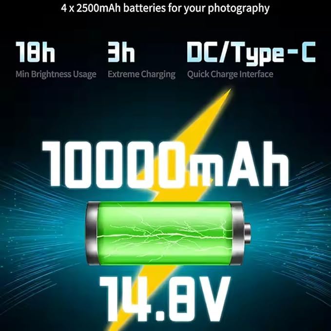 - مصباح LED مستمر سي او بي 80 واط: إضاءة قوية وموحدة للحصول على نتائج احترافية قابلة للتعديل 2500-6500 كلفن: تحكم مثالي في درجة حرارة اللون لجميع سيناريوهات التصوير المدمج بطارية 3400 مللي أمبير في الساعة: استخدام محمول بدون طاقة تيار متردد للتصوير في الهواء الطلق تصميم محمول: خفيف الوزن وسهل الحمل للتصوير الفوتوغرافي أو الفيديو المحمول