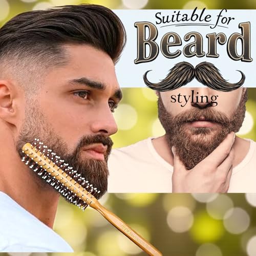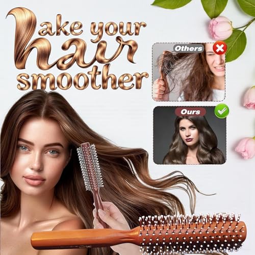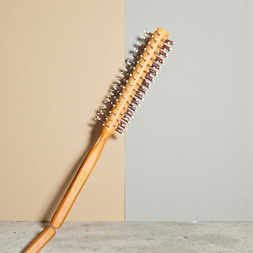 - مزايا التصميم: فرشاة تصفيف دائرية بمقبض خشبي طبيعي وشعيرات نايلون مزودة بحبات مدوّرة لتصفيف الشعر بلطف وتدليك فروة الرأس.