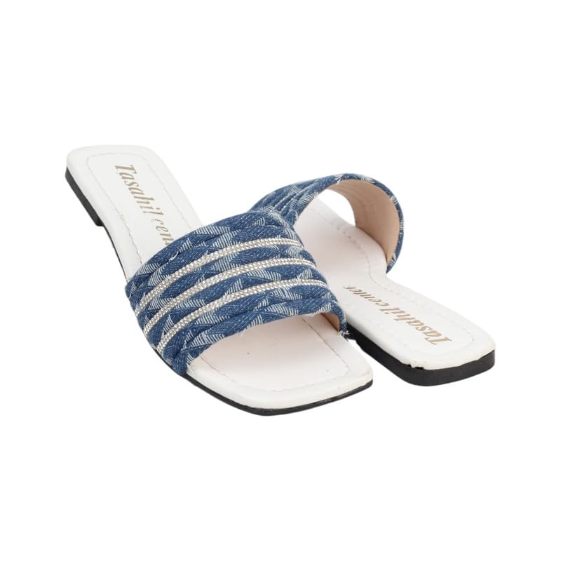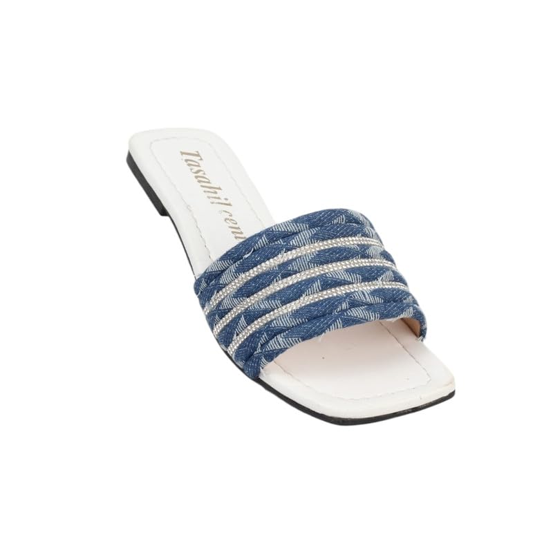 Generic - سليبر حريمى فلات جلد فى قماش 864 كحلى 37