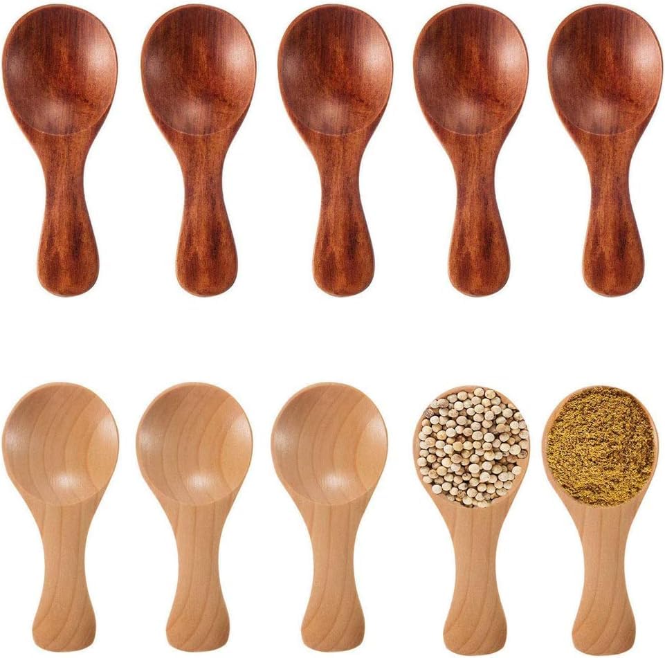 AREXOL - طقم معالق خشبية صغيرة بطول 8 سم لتقديم القهوة والحلويات والتوابل – معالق ميني من الخشب الطبيعي آمنة على الطعام بملمس ناعم وتصميم أنيق تضيف لمسة فنية ودفء للمطبخ