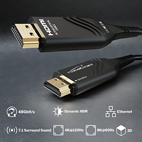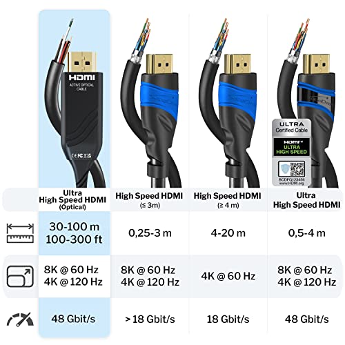 KabelDirekt - كابل HDMI 8K - 50 م - HDMI بصري فائق السرعة مصمم في ألمانيا مع فقدان إشارة 0% (8K@60 هرتز، كابل HDMI من الألياف البصرية المرنة، نقل بدون فقدان) - من كابل دايركت