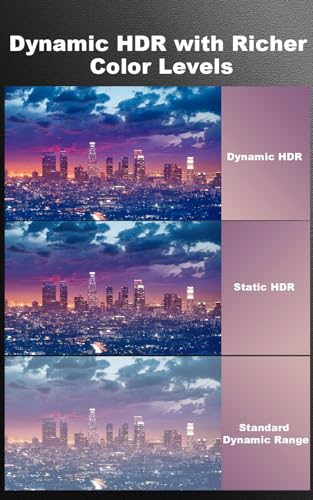 - متوافق مع أجهزة اتش دي ام اي -- جهاز فك التشفير وألعاب الفيديو (PS3/PS4/PS5)، ومشغلات دي في دي بلو راي، وسلسلة اكس بوكس، وتلفزيون UHD والتلفزيون عالي الدقة، والصوت الرقمي، وشاشات انش مختلفة، والكمبيوتر، وتلفزيون اتش دي تي في 4 كيه فاير ونتفليكس وغيرها من الأجهزة التي تدعم اتش دي ام اي.