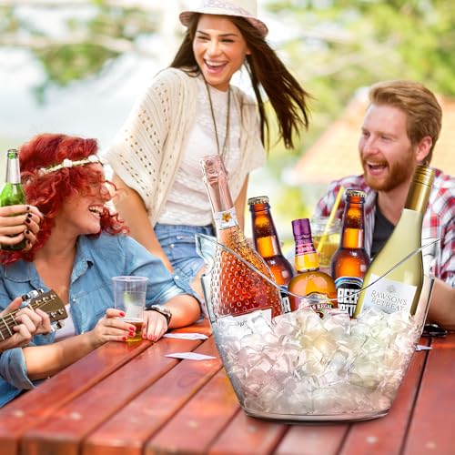 - الاكريليك: جردل ذو سعة كبيرة مصنوع من الاكريليك المتين، آمن غذائيًا ويمكنه الحفاظ على الثلج باردًا لفترة طويلة؛ جردل الثلج الكبير الحجم لتبريد المشروبات، هو ملحق أنيق للحفلات، فقط امسحه بالماء بعد الاستخدام.
