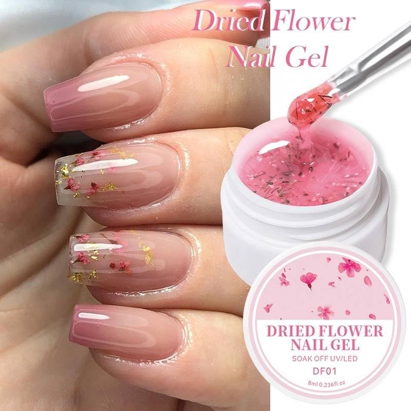 - طلاء أظافر جل بتصميم زهور مجففة يضيف مظهرًا ناعمًا وأنيقًا وفنيًا للأظافر، مثالي لابتكار أنماط فنية موسمية للأظافر مع مظهر زخرفي طبيعي