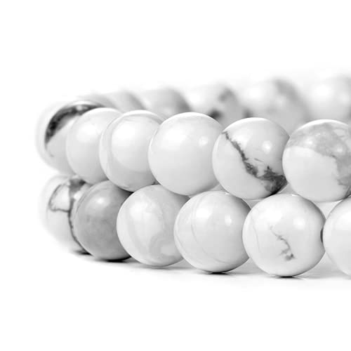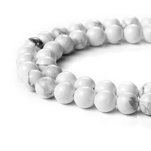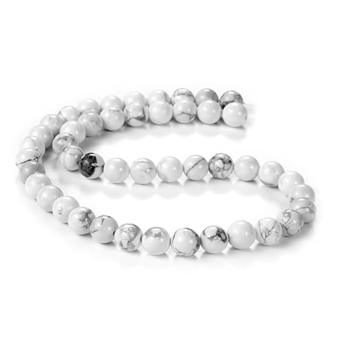 Generic - خرز 8 ملم طبيعي ابيض من حجر هولايت الكريم مدور وفضفاض لصناعة قلائد المجوهرات (45-48 قطعة)