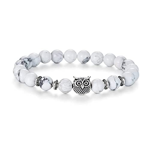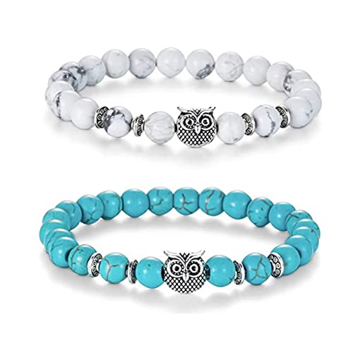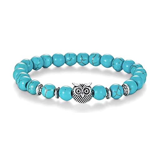 generic - سوار خرز على شكل بومة 8 ملم، سوار كريستال علاجي للنساء والرجال من حجر الطاقة الروحية، سوار خرز حجر عين النمر الفيروزي، هدايا، احجار، بدون احجار كريمة