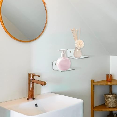 Generic - أرفف حائط صغيرة شفافة من الاكريليك مقاس 9×10×5 سم، رف عرض عائم مثبت على الحائط للديكورات الصغيرة، 8 قطع
