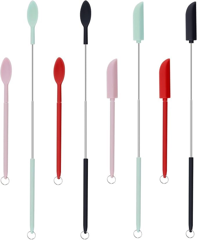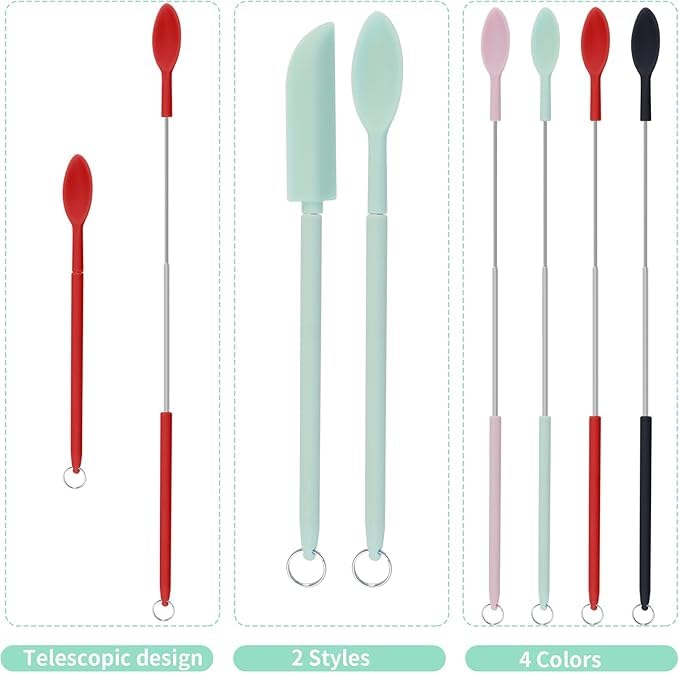 Generic - 8 قطع من معلقة سباتولا صغيرة تلسكوبية من السيليكون وملعقة مغرفة صغيرة قابلة للتعديل بمقبض قابل لاعادة الاستخدام ومكشطة للمطبخ ومستحضرات التجميل، 4 الوان