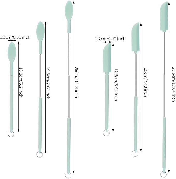 - تصميم قابل للسحب: ملعقة مسطحة وملاعق السيليكون الخاصة بنا تلسكوبية. يمكن تعديلها إلى أطوال مختلفة، لتناسب الارتفاع المختلف للزجاجات. هذه الملاعق هي الحجم المثالي لإزالة القطع الأخيرة من المنتج. مريحة في الاستخدام، رفيعة بما يكفي لتناسب معظم الحاويات والزجاجات