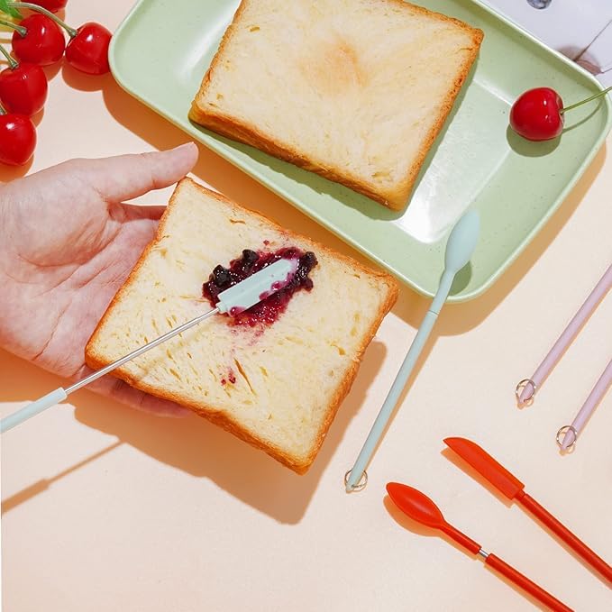 - مادة السيليكون: هذه الملاعق الصغيرة مصنوعة من السيليكون الآمن غذائيًا والستانلس ستيل، رقيقة ولكنها صلبة لا تنكسر بسهولة، متينة للاستخدام لفترة طويلة. ملاعق مسطحة قابلة لإعادة الاستخدام يمكن أن تصل بسهولة إلى انحناءات وزوايا الحاويات، آمنة للتلامس مع الطعام ومستحضرات التجميل