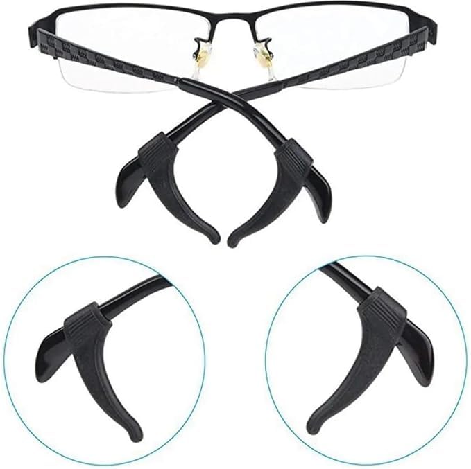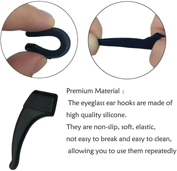 Generic - 8 قطع من خطافات اذن سيليكون مضادة للانزلاق للنظارات، حامل مرن للنظارات، اكسسوارات النظارات، حامل سيليكون غير قابل للانزلاق للنظارات واطراف الذراع والاذن، اسود