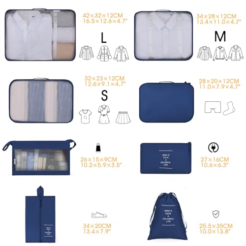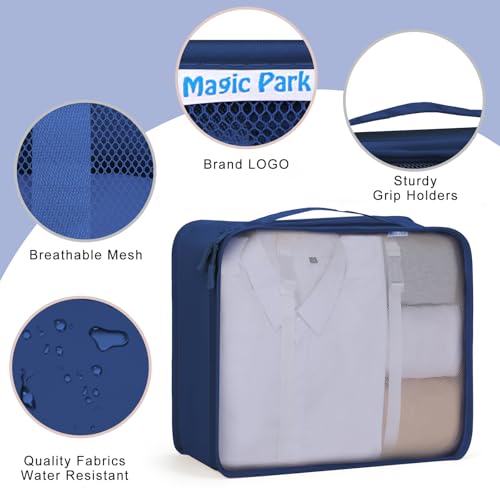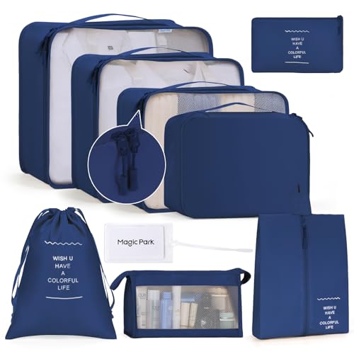 Magic Park - 8 قطع من منظم حقائب السفر لتخزين الملابس والاحذية واكسسوارات السفر للمنزل والسفر (ازرق كحلي)