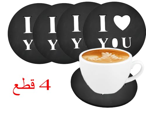 Generic - كوستر قاعدة اكواب خشب قطر 9.5 سم محفورة بالليزر اشكال -4 قطعة - كود 7029 - من رنا ستور، أسود