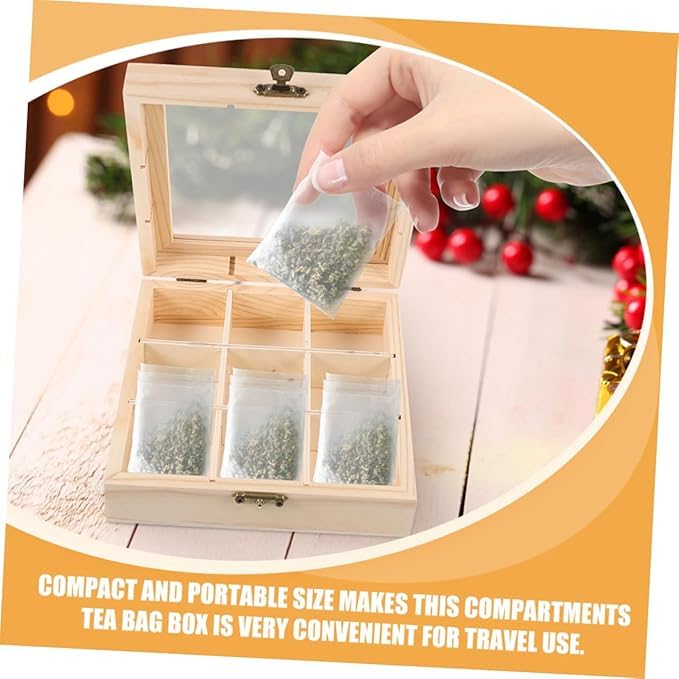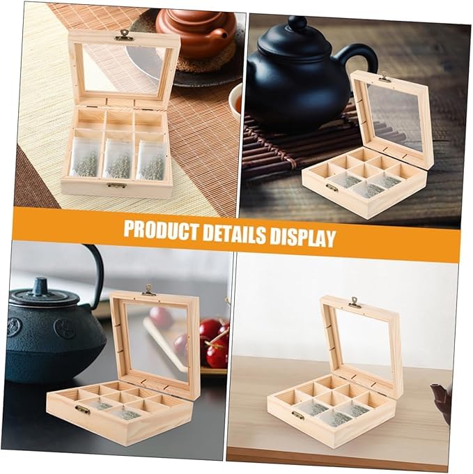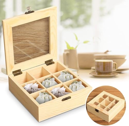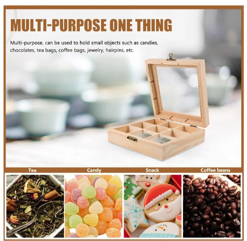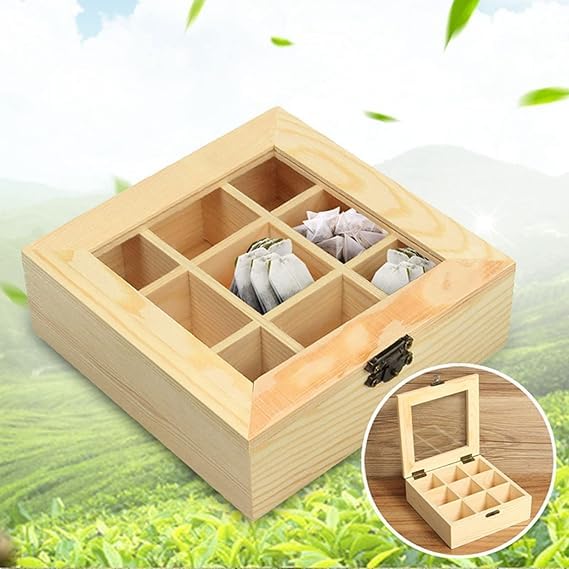 Generic - صندوق تخزين الشاي الخشبي من 9 مقصورات، منظم لأكياس الشاي والمبيض والسكر وكبسولات القهوة وأكياس القهوة سريعة التحضير