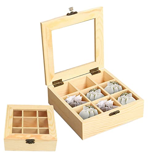 - يبلغ مقاس صندوق منظم الشاي الخشبي ذو الطراز العتيق 6 انش × 6 انش × 6 انش مع 9 مساحات تخزين لحمل أكياس الشاي وغيرها من الأحجام المشابهة. حافظ على جميع أنواع الشاي المفضلة لديك منظمة بشكل أنيق.