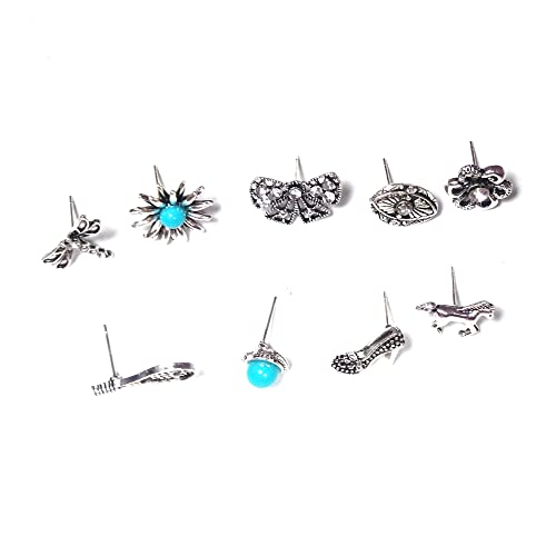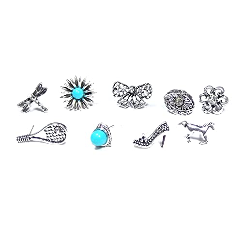 Generic - 9 حلقان لون فضة عتيقة اشكال مختلفة - حلق حريمي بوهو، متعدد الألوان، للنساء