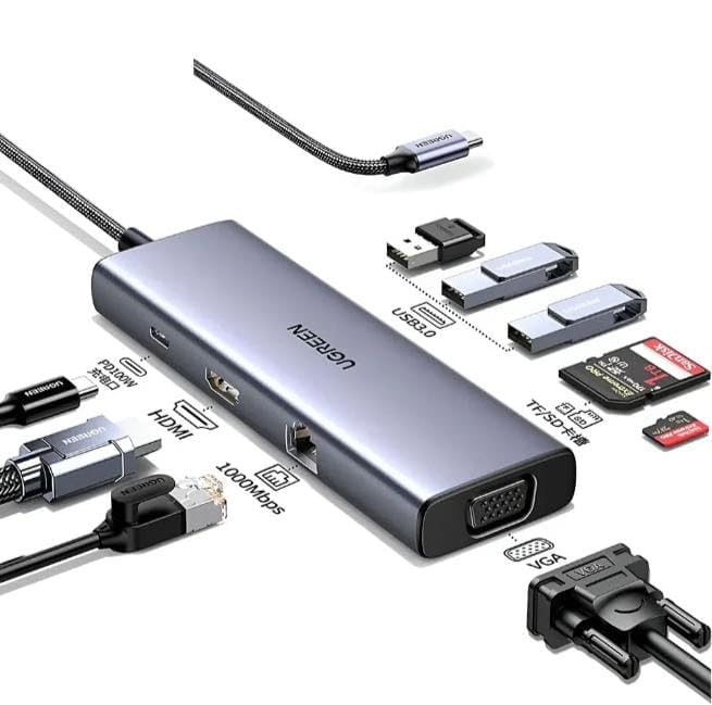 Generic - قاعدة شحن متعددة الوظائف 9 في 1 بمنفذ USB نوع سي مع 4 كيه اتش دي ام اي، 1 × في جي ايه، 3 × USB 3.0 امبير، جيجابت ايثرنت، 100 واط بي دي، فتحة بطاقة SD/TF (15600)