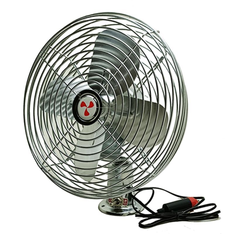 • مروحة السيارة الدائرية من الستانلس ستيل 9 انش، 22.5 سم، 12 فولت، 2 سرعة مصممة بمشبك كبير ويمكن تثبيتها بشكل جيد، ومناسبة للتركيب على السيارة والمرمتجكبات.