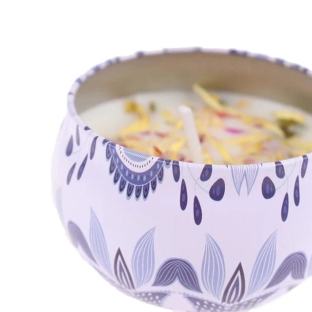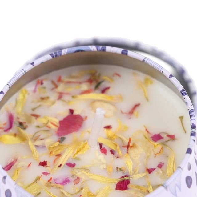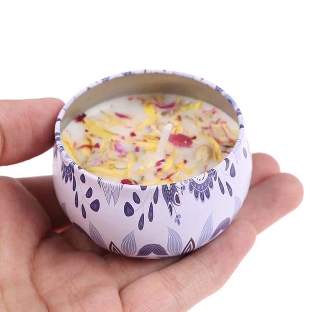 - قطعة واحدة من شمعة معطرة مصنوعة يدويًا من شمع الصويا الطبيعي، شموع معطرة مع زهور، علبة من القصدير لتزيين المنزل (6 × 4)