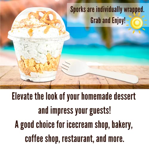 - مصنوعة من مادة آمنة. خالية من البيسفينول ايه. مصنوعة بنسبة 100% من بلاستيك بولي ايثيلين تيرفثالات الآمن غذائيًا (بولي ايثيلين تيرفثالات ). آمن للمشروبات الباردة والطعام والبارفيه والزبادي والحلوى والحلوى والوجبات الخفيفة والآيس كريم والكب كيك والقهوة المثلجة والسموذي وشاي الفقاعات والميلك شيك والكوكتيل المجمد والماء والصودا والعصير. تحتوي العبوة على 50 كوبًا بلاستيكيًا شفافًا متينًا، و50 غطاء قبة بدون فتحات، و50 شوكة ملفوفة بشكل فردي.