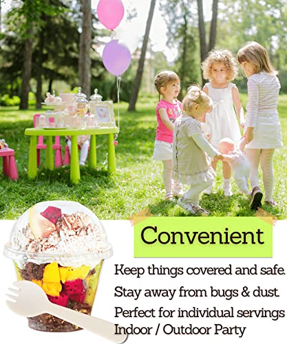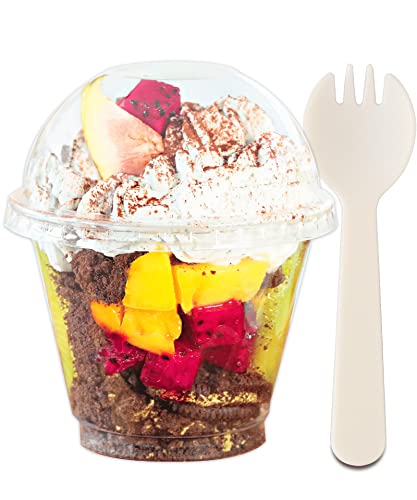 - عبوة قيمة رائعة: وفر الكثير من المال عن طريق صنع بارفيه الفاكهة الخاص بك للضيوف. تتضمن المجموعة 50 كوبًا بلاستيكيًا شفافًا و50 غطاء قبة بدون فتحة و50 شوكة ملفوفة بشكل فردي.