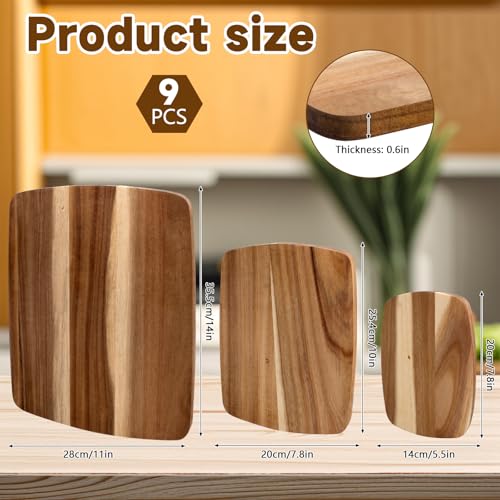 - حجم مثالي: سوف تحصل على 9 قطع من ألواح التقطيع من خشب الأكاسيا بثلاثة أحجام، 3 من كل حجم، بما في ذلك الحجم الكبير حوالي 14 × 11 انش، مقاس متوسط حوالي 10 × 8 انش، وحجم صغير حوالي 8 × 5.5 انش، والذي يمكن أن يلبي احتياجاتك المختلفة للاستخدام والاستبدال
