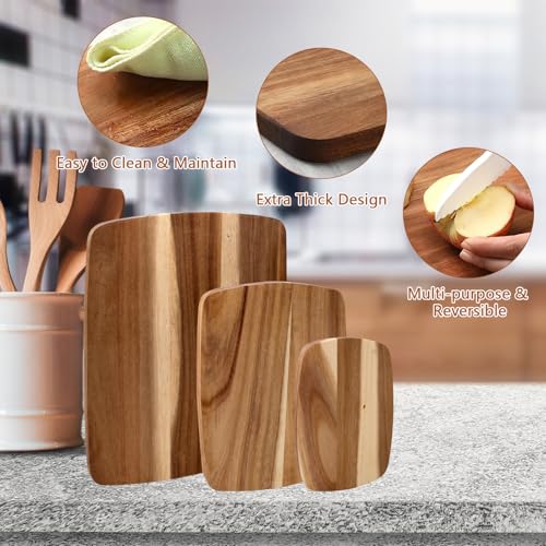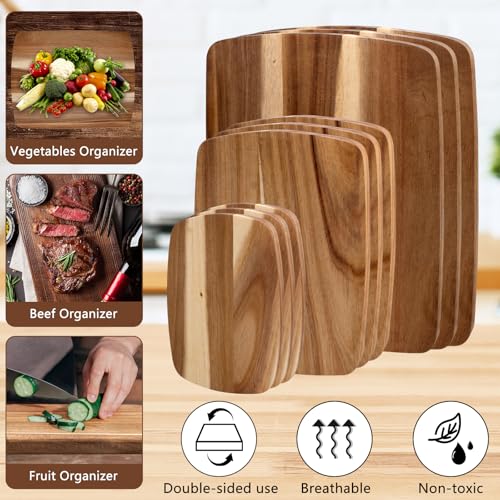 - خشب أكاسيا عالي الجودة: ألواح المطبخ الخشبية مصنوعة من خشب الأكاسيا بنسبة 100%. مواد آمنة غذائيًا، بدون صمغ أو بلاستيك بي في سي أو لمسات نهائية سامة، قوية ومتينة، ليس من السهل ثنيها أو تشققها، يمكن استخدامها لفترة طويلة