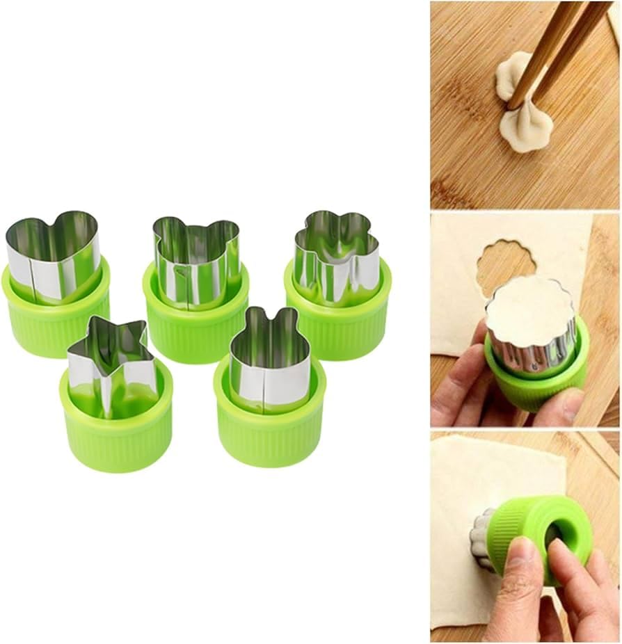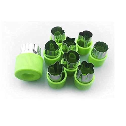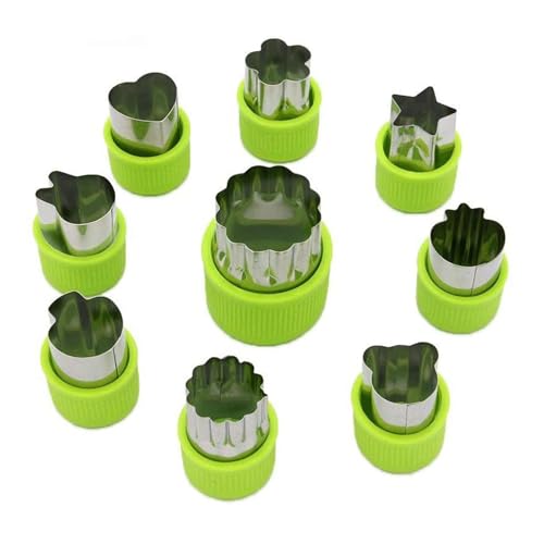 Generic - قوالب تقطيع خضروات وفواكه بأشكال زهور، مجموعة 9 قطع، ستانلس ستيل مع قاعدة بلاستيك خضراء، لتزيين الطعام والحلويات