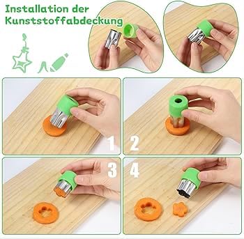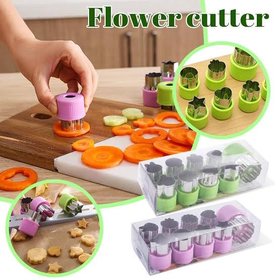 - مجموعة قوالب تقطيع متعددة الأشكال: تتضمن 9 قطع بأشكال زهور وورود ونجوم متنوعة لتزيين الفواكه والخضروات والجبن