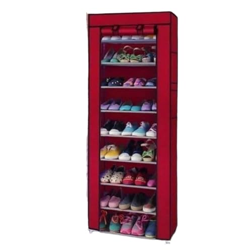 DRaX - خزانة تخزين احذية محمولة من 9 طبقات، غطاء قماشي احمر مع سحاب، منظم رف احذية قائم بذاته