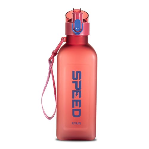 Generic - زجاجة مياه سبيد بلاستيكية بتصميم مربع خالية من البيسفينول أ مع غطاء قلاب مقاوم للتسرب مع ماصة بلاستيكية مريحة، 900 ملليليتر، أحمر