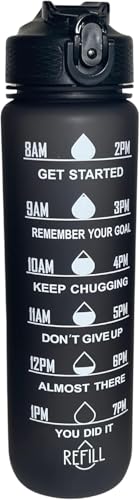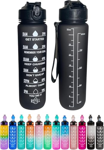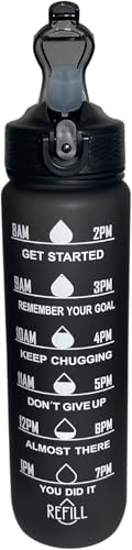 Generic - زجاجة مياه رياضية مزودة بعلامات زمنية تحفيزية ومانعة للتسرب خالية من مادة بيسفينول أ للجيم واليوجا وركوب الدراجات والجري والتخييم، 900 مل، أسود