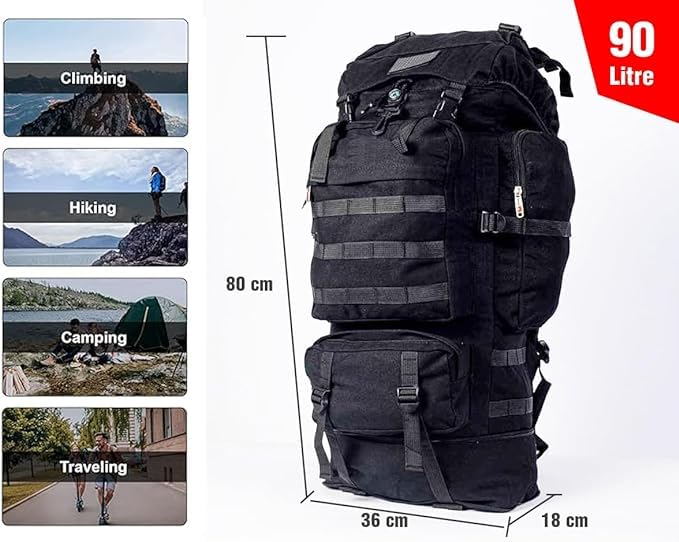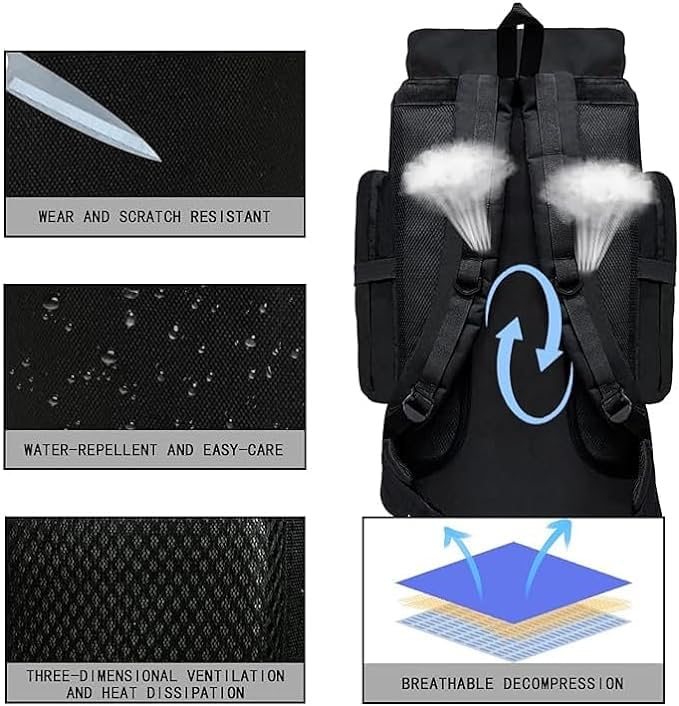 Generic - شنطة ظهر تكتيكية كبيرة للغاية 90 لتر للمشي لمسافات طويلة مقاومة للماء للرجال للسفر والتخييم والصيد والرحلات والتسلق، أسود