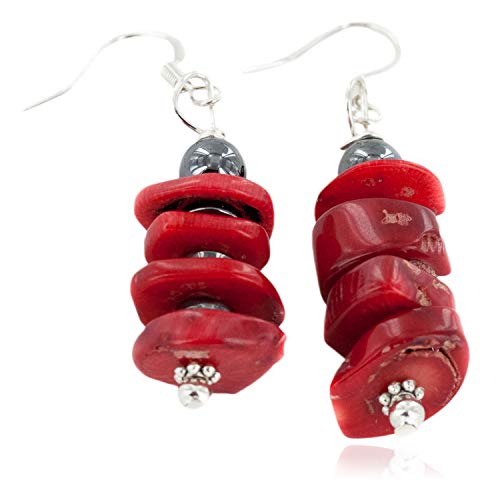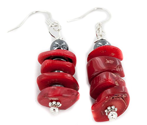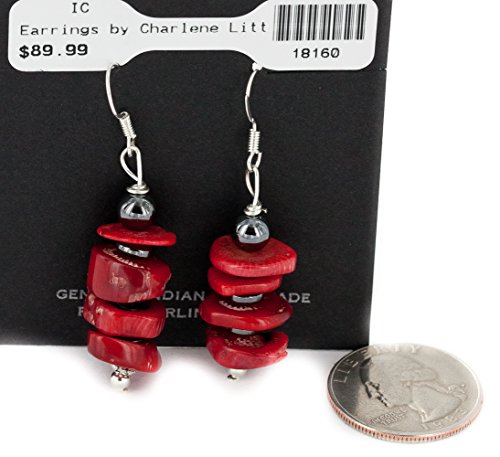 Native-Bay - اقراط نافاجو فضية معتمدة من 90 دولار متدلية طبيعية مرجان 18160 مصنوعة بواسطة لوما سيفا نايتيف - باي متعدد الألوان مواد مختلطة للنساء للرجال للبالغين للجنسين -