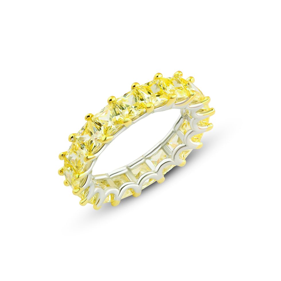Generic - خاتم فضة عيار 925 مرصع بالزركون الأصفر بتصميم بطابع الأميرات بلون ذهبي، مقاس 7