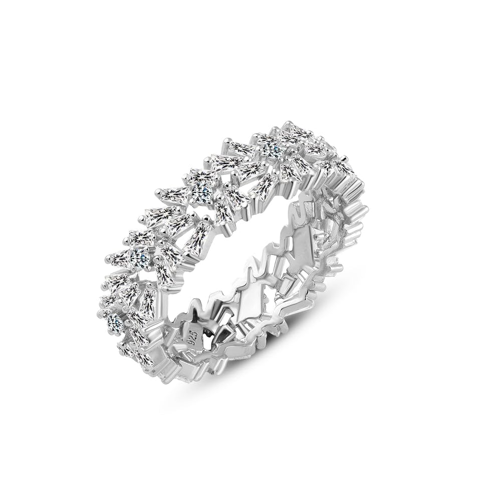 Generic - خاتم فضة عيار 925 مزين بالزهور مع احجار زركون مقطوعة مختلطة، مقاس 8