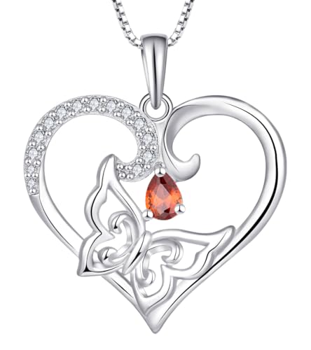 Generic - عقد من الفضة عيار 925 بتصميم قلب وفراشة