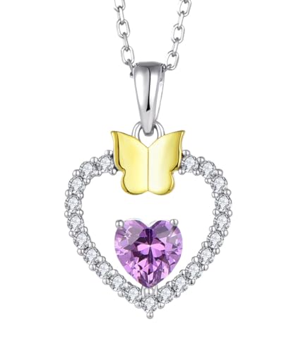 Generic - قلادة من الفضة عيار 925 تتميز بقلب وفراشة، مطلية بالذهب