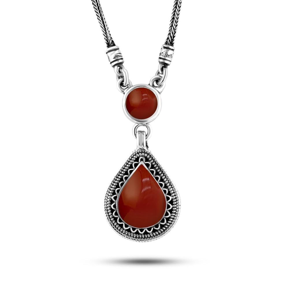 Generic - عقد فضة عيار 925 للنساء مرصع بالعقيق